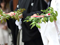 <挙式の感想をお聞かせ下さいませ> 雨に悩んで当日をむかえましたが、本当に良く晴れ、 6月上旬だったので気候も爽やかで新緑も眩しく、本当に最高でした。 宮司さんもとても丁寧で、列席者の皆も、厳かだけど気負いしなくて良かったと誉めていただけました。