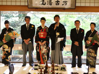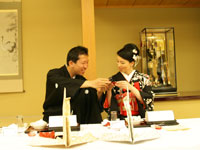 <披露宴の感想を お聞かせください> 振り返って、大きなイベントは行わなかったと思いますが、 みんなわきあいあいとうちとけて、いい感じでできました。 挙式の形式ばったところと、移動の旅行気分の人力車。 そして和風のちょっとゆるい宴会。いい流れだったと思います。 もしかしていろんなことにこだわりすぎたり、普通とはちょっと違ったところもあったかもしれないけど、 それはそれでよかったのではと思っています。 実際本人の僕達は、まだまだ準備ができていなくて、ぶっつけ本番のところがあったり、 いろいろありましたが、以外と「いけた?」と思っています。 自己紹介のところを含めて、みんながどんな人がいるのかな、というのがわかり、 「仲良くなってほしいという願い」をわかっていただき、 これからもつながっていくと思うとうれしく思います。