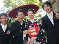 <ゲストの皆様からの評判はいかがでしたか> 料亭で食べられたこと、ちょっと変わった披露宴。 坂のきつい神社、緑あふれる境内。みんなで人力車。 そして親族の再会、そしてこれからの結びつきの新しい家族の紹介の仕方など。 喜んでおられたと思います。