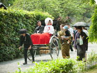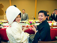 <LSTウエディングをお選びいただきました理由をお聞かせくださいませ> 京都で和婚式をしたいということで、サポートをしてくれる会社を探していました。 私たちは海外にいるため、電話での相談とHPを見ることしかできなかったのですが、 そういった会社のHPをいくつか比べてみた結果、LSTさんのHPは全体の構成がとてもよかったこと、プランの種類と内容がとても豊富であること、サンプル写真の豊富さにとても満足しました。 自社のHPにこのように時間を費やし, 丁寧に運営している会社ならばその他のサービスも行き届いているだろうと思い、LSTを選びました。
