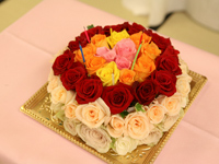 <特に心に残っているシーンをお聞かせくださいませ> 私のために今まで頑張ってきてくれた父とウエディングドレスで一緒に入場したこと。とっても感激しました。その後になんと主人からのプロポーズがあって、感動的でした。
