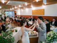 ・特に心に残っているシーンをお聞かせください 雲一つない晴天の中、八坂神社の本殿に向かって参進しているところが印象に残っています。 久しぶりに会う親族も多かったので、披露宴でテーブルごとに回って一人一人とお話ができたことがよかったです。親族にも喜んでもらえました。 普段そこまで感情をあらわにすることが少ない父がバンザーイと言って喜んでいたのが 印象深かったです。祖母が「本当に私の思う通りになって」と言う自分の主観に満ちた言葉を言いつつも、とても満足していたことも印象的でした。 妹が最初から最後まで動画に収めていて、それを即日動画にアップしていた事は素晴らしい働きぶりだと感動しました。 挙式後、LSTの社長さんもお越しになって挨拶をいただいたこともとてもよく覚えています。 閉会後イルギオットーネの笹島さん夫妻からも、お祝いでスパークリングワインをいただけたこともとても感謝しております。